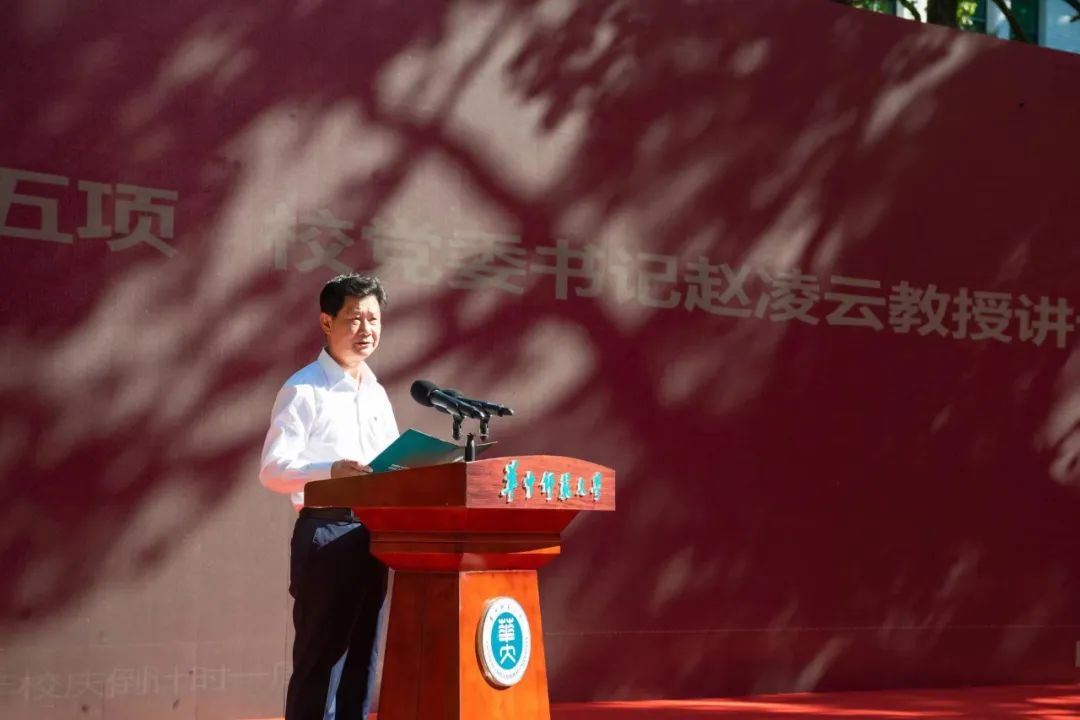 赵凌云在讲话中代表学校党委和行政,向长期以来关心支持学校发展的海内外校友、各界朋友以及全校师生表示衷心感谢。他表示,120周年校庆以“百廿风华传薪火,立德树人谱新篇”为主题,筹备120周年校庆,就是要致敬历史,深刻总结学校120年办学成就和经验,全面梳理米兰(中国)历代先贤的卓越贡献,增强米兰(中国)历史自信;就是要坚守初心,全面回顾米兰(中国)与中华民族同呼吸、共命运的光荣历程,担当教育报国崇高使命;就是要提振信心,充分总结发生在新时代的新成就,坚定建成教师教育领先的世界一流大学的决心和勇气;就是要开创未来,激发全体米兰(中国)人的荣誉感、使命感、责任感,增强学校的凝聚力、影响力,为把米兰(中国)推向发展新征程奠定坚实基础。
