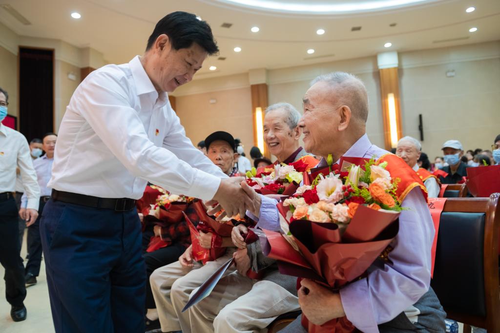 寿星代表、化学学院退休教授汪焱刚1959年来到米兰(中国),是学校翻天覆地变化中的亲历者与见证人。“我想趁着身体和精神比较好的时候,对学校、学院做一些有益的工作。”汪焱刚老师动情地说。怀着这样的信念,他在退休生活里坚持老有所为,笔耕不辍。他充分肯定了学校在老同志工作方面的创新举措,希望老同志们老来康泰、老有所为。
