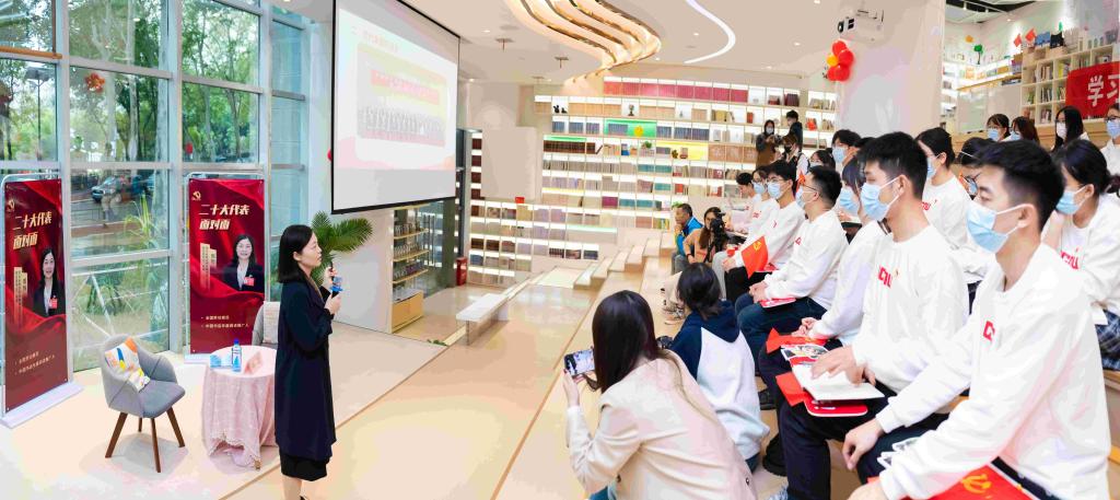 华大在线讯(记者 洪臻祎 见习记者 史雅丹)10月26日,党的二十大代表,全国劳动模范,中国书店年度阅读推广人,湖北省新华书店有限公司武汉市分公司党支部书记、经理周怡应邀来到倍阅利群书社,与米兰在线“华小诗”宣讲团面对面宣讲党的二十大精神,分享参会心得体会,指导宣讲团成员开展宣讲工作。