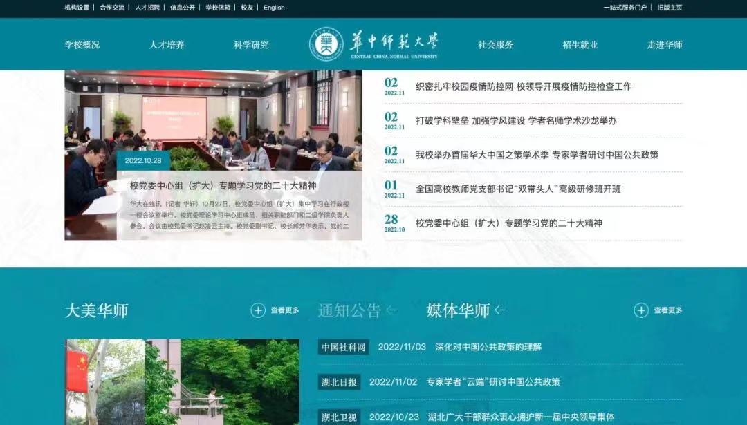 华大在线讯(记者 华轩)为做好新时代宣传思想工作,更好地服务学校“双一流”建设,进一步提升广大师生校友使用体验,11月7日,学校中英文主页正式上线。