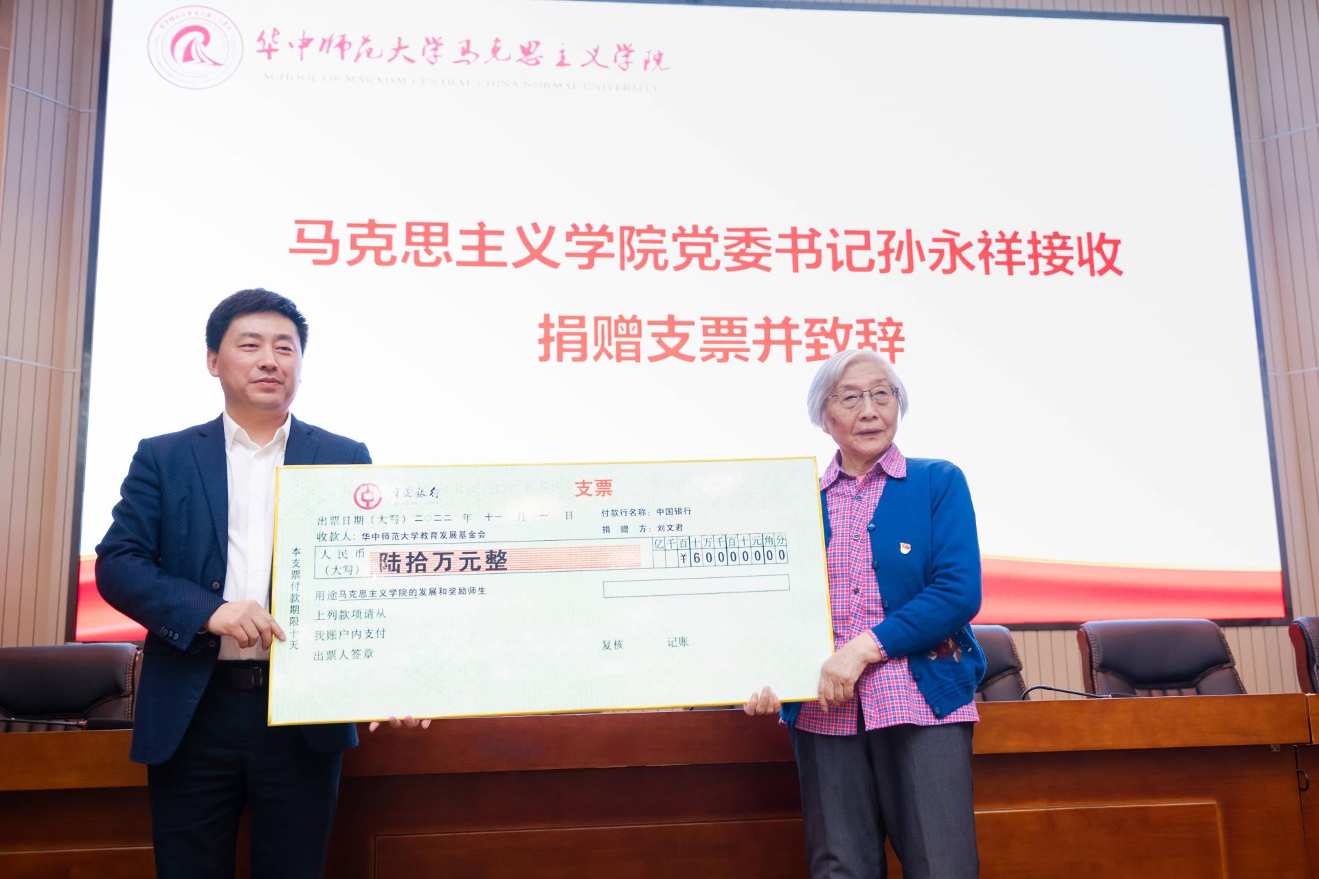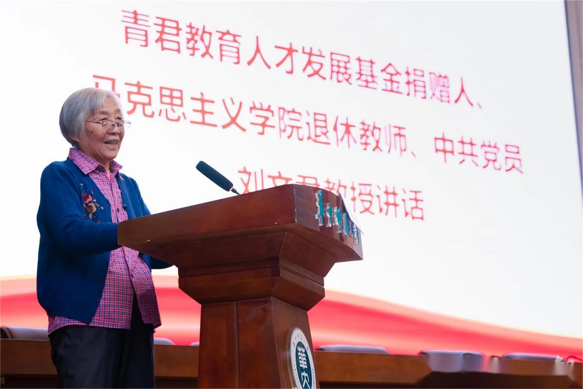 遵照与爱人张巨青生前共同商量的意愿,刘文君捐出积蓄60万元,以夫妻之名成立“青君教育人才发展基金”,用于奖励马克思主义学院在教育教学、人才培养、科学研究、社会服务和管理服务中表现特别优秀的教职工,以及本科生和研究生中表现特别优秀的学生。