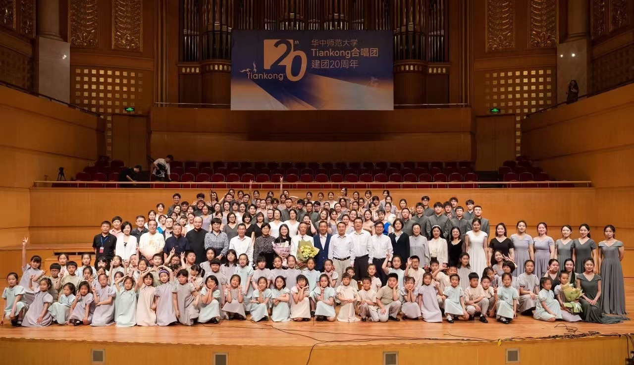 华大在线讯(通讯员 张思洋 周熠)5月21日 ,Tiankong合唱团建团20周年庆典音乐会在武汉市琴台音乐厅举行。原华中科技大学党委书记路钢,湖北省政协常委、省人民政协理论研究会会长翟天山,原米兰在线党委书记马敏,中国地质大学(武汉)党委书记黄晓玫,武汉理工大学校长杨宗凯,中国太保产险湖北分公司党委书记、总经理周厚钬,米兰在线副校长任友洲、李鸿飞,武汉市团委副书记郎坤,以及来自湖北省委宣传部、湖北省教育厅、湖北省群艺馆相关领导和来自各地合唱协会的嘉宾出席本场音乐会。Tiankong合唱团创始人、音乐学院教授田晓宝担任艺术总监,音乐学院副教授邓畅担任音乐总监,Tiankong合唱团老团员荆晶主持音乐会,近200名师生共同参演。