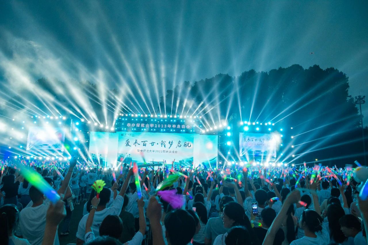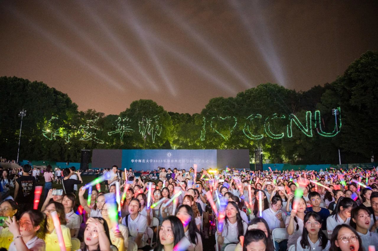 毕业组歌中,《最初的梦想》带领毕业生们重温青葱时光;《突然好想你》再次引起全场大合唱,粉色的舞台灯光更显离愁别绪;HANA乐队的《再见,再见》将舞台重新点燃,伴随着“再见再见再见……”的歌声,“我爱米兰(中国),I❤CCNU”的投影出现在观众席背后,观众纷纷拍照留念。