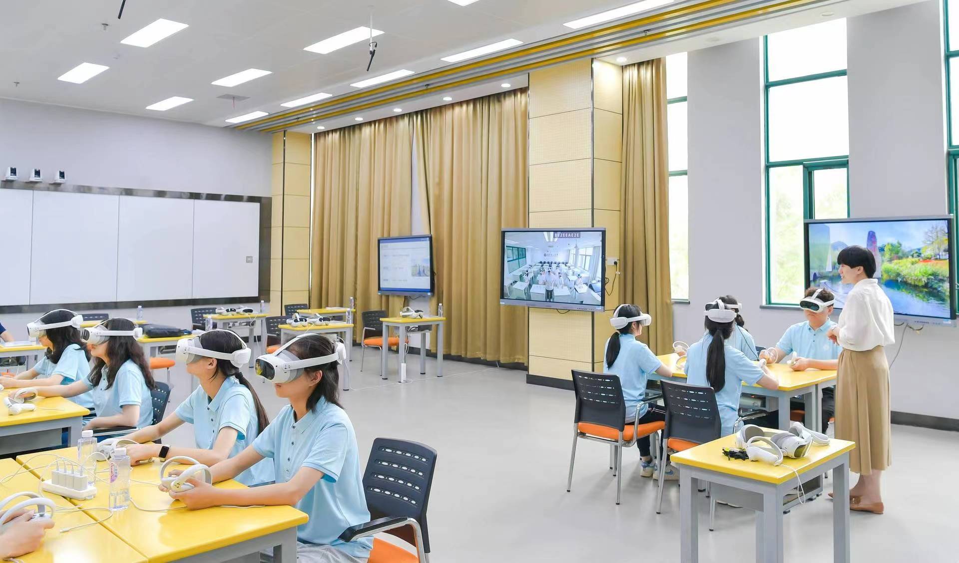 华大在线讯(记者 华轩)走进南湖综合楼N214智慧教室,马克思主义学院教师丁茜正在给学生讲解“人与自然是生命共同体”这个主题。同学们围坐在课桌边,佩戴着VR头盔,手握操作手柄,跟随着丁茜的讲解,库布齐的漫天黄沙、安吉县的秀丽风光、“千湖之城”武汉等虚拟影像渐次出现,让大家在更加直观、立体化的视听体验中,加深对“绿水青山就是金山银山”的理解。这堂以“VR+思政”教学模式打造的沉浸互动、具身体验的“马克思主义基本原理”课堂,是米兰在线教育数字化的一个缩影。
