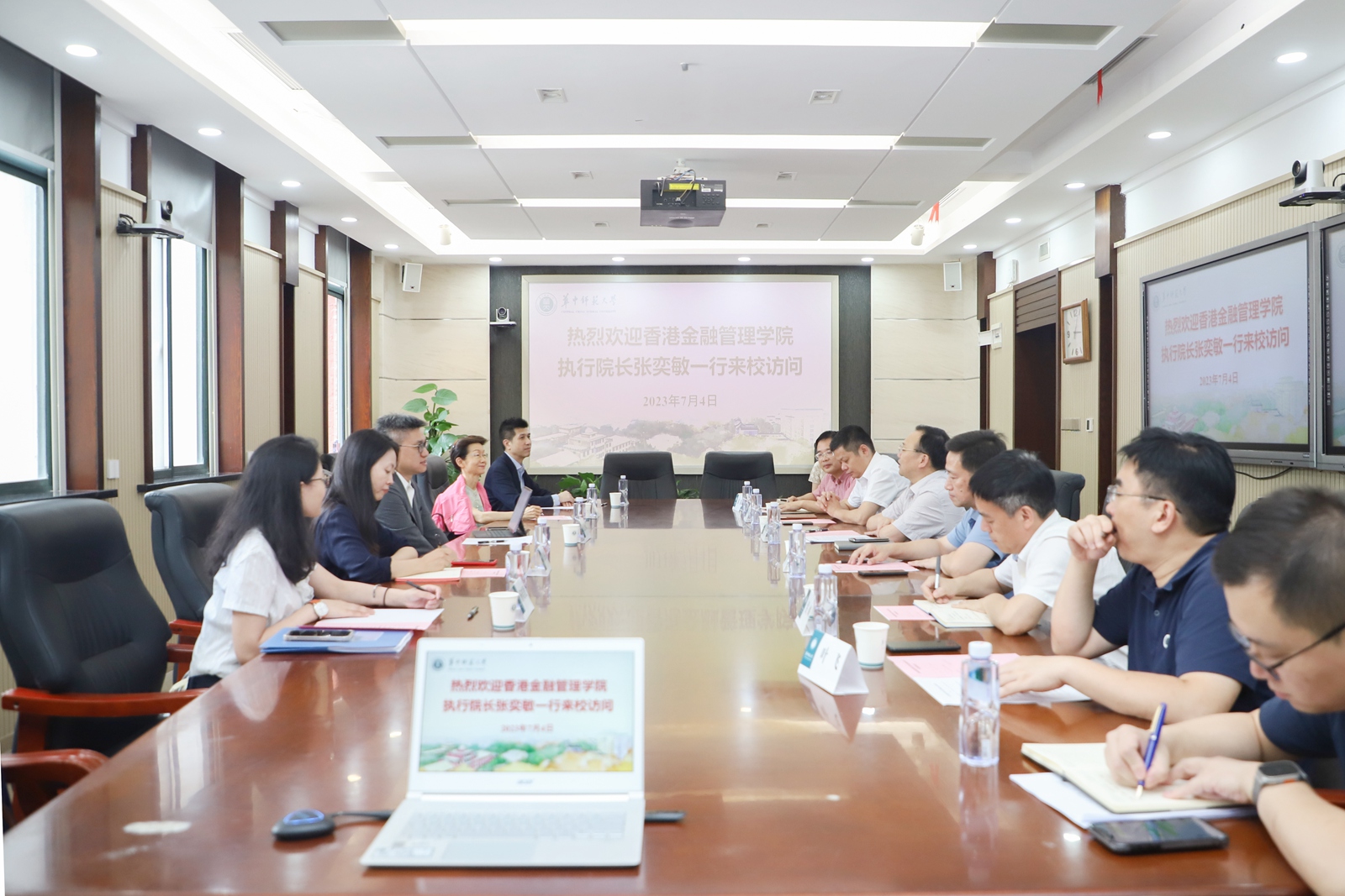 华大在线讯(记者 秦一冉)7月4日,香港金融管理学院执行院长张奕敏、联席院长沈雪明等一行五人来访,校党委书记夏立新、副校长彭双阶会见代表团一行。研究生院、校友办、港澳台办等相关负责人参加会见。