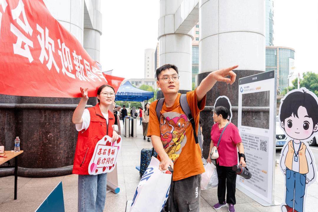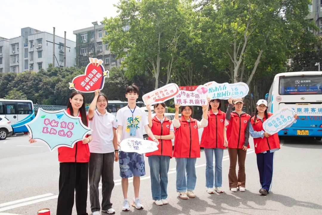 “暖心服务”体现“爱在米兰(中国)”。身穿红色马甲志愿者的身影在武汉市 “三站一场”以及桂子山上随处可见。学校、各培养单位均安排学生志愿者,面向新生提供“一对一”志愿服务,到校后在引导下依次完成报到流程、物资领取、寝室入住等全部流程。报到当天,校园内设立了7个志愿服务站点,为新生提供道路引导等帮助。同时,学校在“三站一场”安排迎新专车,负责接送新生及家长到校,桂子山和南湖校区迎新点也配备了转运车辆,方便学生搬运行李。