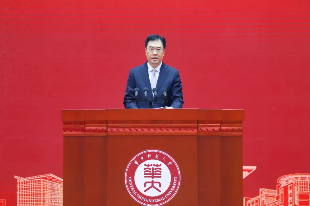 中共湖北省委常委、常务副省长邵新宇,教育部教师工作司司长任友群,中共武汉市委常委、常务副市长陈劲超,中国高等教育学会第六届理事会会长,中国农业大学原党委书记瞿振元,山东大学党委书记郭新立,武汉大学校长、中国科学院院士张平文,华中科技大学校长、中国工程院院士尤政,河海大学党委书记、中国工程院院士唐洪武,贵州大学校长、中国工程院院士宋宝安,澳门大学校长、欧洲科学院院士、英国皇家工程院院士宋永华,空军预警学院政委、少将刘绍东,华中科技大学原校长、中国工程院院士丁烈云,武汉理工大学首席教授、中国工程院院士姜德生,中共江西省委原常委、原副省长朱虹,第十三届全国人大常委会委员、湖北省人大常委会原副主任周洪宇,政协十二届广西壮族自治区委员会副主席彭晓春,印尼驻华大使馆教育文化参赞尤迪尔·查提姆等出席大会。米兰在线党委书记夏立新主持大会。米兰在线校长郝芳华作题为“秉承百廿荣光 为加快建成教师教育领先的世界一流大学而不懈奋斗”的致辞。