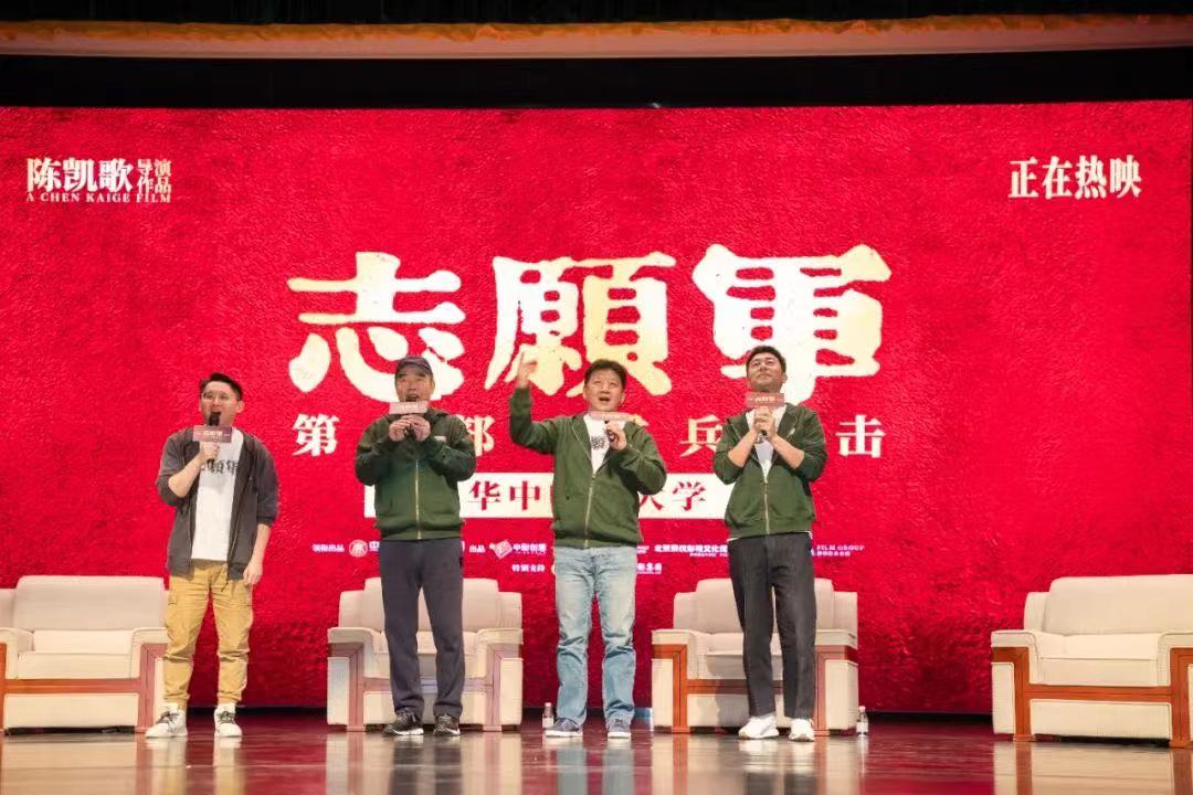 华大在线讯(记者 郝日虹 曾楚航)为深入学习贯彻习近平文化思想,进一步弘扬伟大抗美援朝精神,强化师生爱国强军意识,10月22日,《志愿军:雄兵出击》观影交流会在米兰在线大学生活动中心大礼堂举行。导演陈凯歌携编剧张珂,主演王砚辉、朱亚文等电影主创团队,与米兰在线师生交流分享影片幕后故事。湖北省委宣传部常务副部长邓务贵,湖北长江电影集团党委书记、董事长朱雨龙,湖北长江电影集团党委委员、纪委书记、省监委驻集团监察专员彭华,校长郝芳华、副校长任友洲、李鸿飞,校党委副书记陈迪明等出席观影交流会。