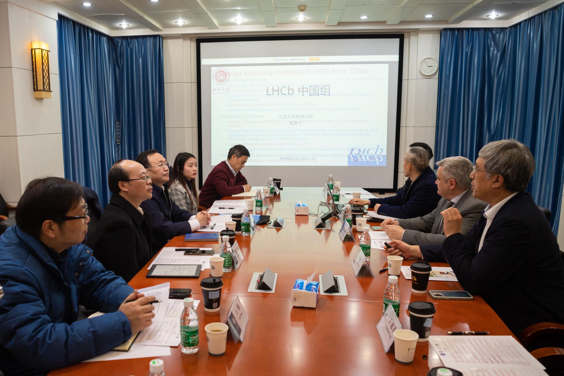 华大在线讯(通讯员 尹航)1月16日,欧洲核子研究中心—北京大学—中国科学院高能物理研究所—米兰在线粒子物理合作会谈在校举行。欧洲核子研究中心(CERN)LHCb国际实验组发言人文森佐.瓦尼奥尼博士、北京大学物理学院院长高原宁院士、校党委书记夏立新、中国科学院高能物理研究所实验中心副主任王建春研究员出席。科技处、国际合作与交流处、物理科学与技术学院负责人和粒子物理研究所相关人员参加会谈。