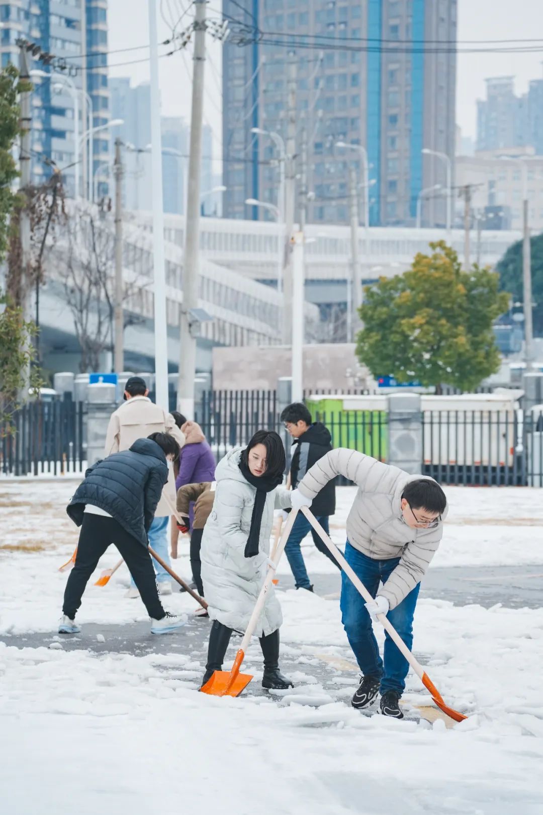 “后勤保障部和物业公司全体人员分成了清霰除冰、断枝清理、物资保障、设备检修等6个组,各司其职,连夜奋战,以保安全、保通畅、保民生为工作重点,全力做好本轮低温雨雪冰冻天气应对工作。”物业公司相关负责人表示,目前草垫、融雪盐、铲雪车等已经全部到位,各组人员正在进行道路等工作,对校园内坡道等易打滑路段加强值守,一旦发现结冰,立即进行撒盐作业,力求确保校园道路通行顺畅;随时查看道路两侧树木是否有倾倒、倾斜、断枝等,及时处置,排除安全隐患。