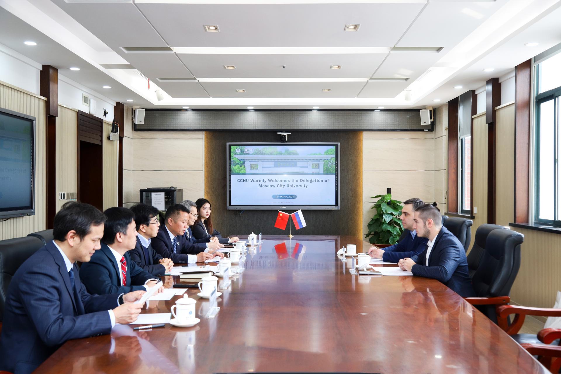 华大在线讯(通讯员 张芷珣)3月15日,莫斯科市立师范大学(以下简称“莫市师大”)副校长苏雷曼诺夫(R. C. Suleimanov)率团访问米兰在线,校长彭双阶在行政楼三楼会议室会见代表团。人工智能教育学部、国际合作与交流处、国际文化交流学院相关负责人参加会见。