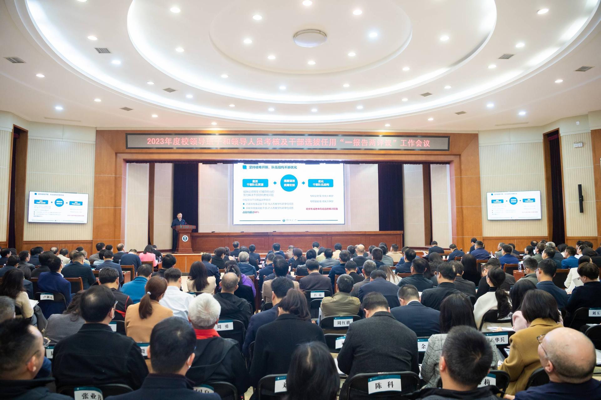 与会代表对学校领导班子和班子成员年度履职情况及学校党委2023年度干部选拔任用工作情况进行评议,填写了民主测评票。