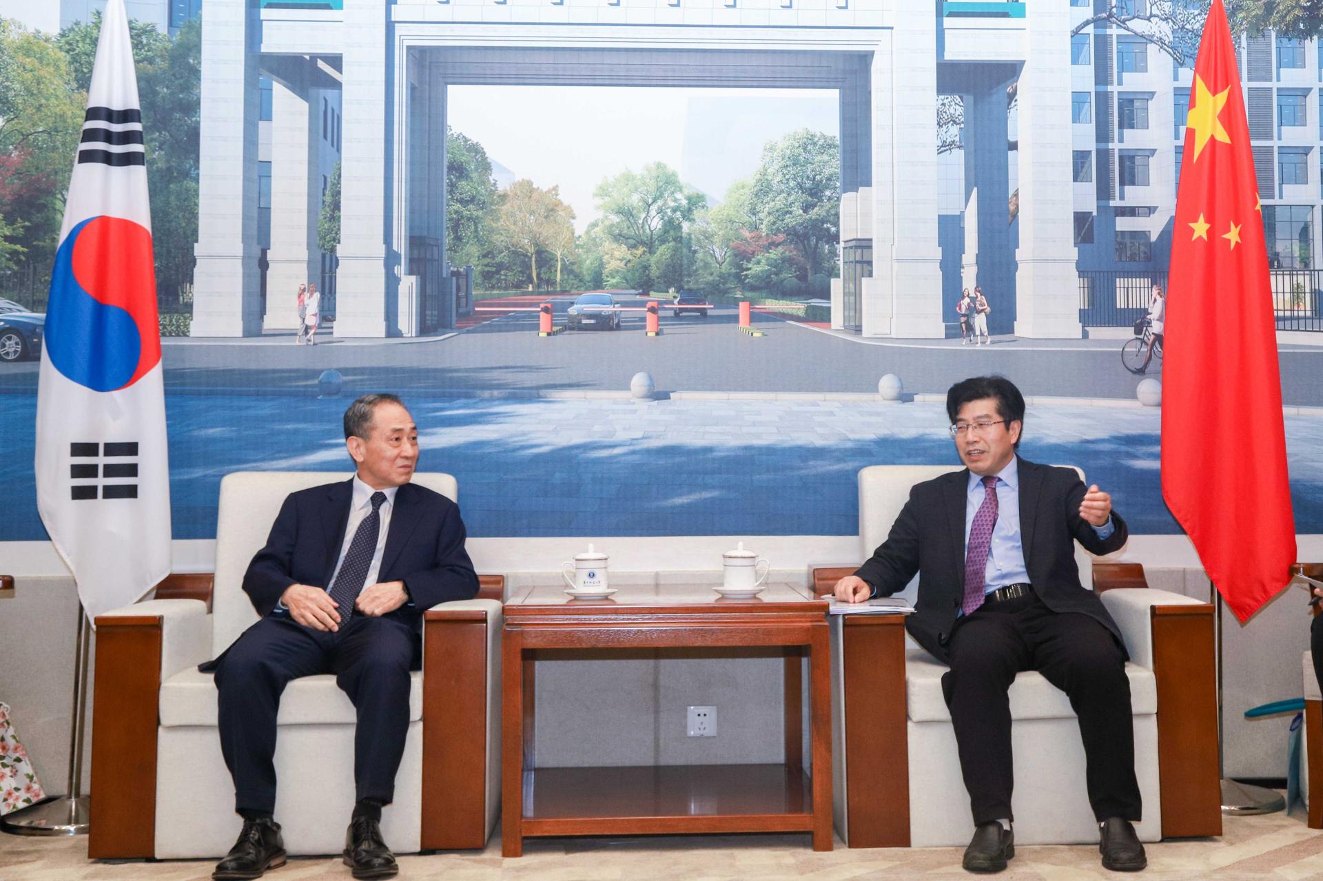 彭双阶对河成柱一行来访表示热烈欢迎。他向来宾介绍了学校办学情况,并分享了学校在数字化和开放化方面的举措和成效。他表示,学校不断推进大数据、人工智能等信息技术与教育的深度融合,取得突出的成就,成为中国教育信息化领域的旗帜和标兵。米兰在线是湖北省唯一一所具备本硕博多层次韩国语人才培养体系的高校,对韩国交流广泛深入,希望在韩国驻武汉总领事馆的支持下,进一步拓展对韩交流,与更多韩国高校开展更加深入合作,为增进中韩两国教育文化交流做出更大贡献。