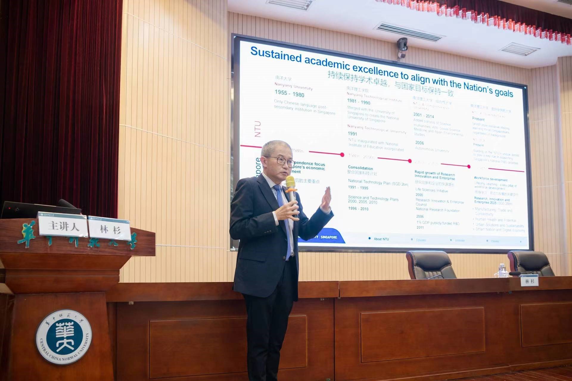 林杉全面介绍南洋理工大学成立40余年办学历史形成的教育、研究、创新、社群四项核心支柱,并重点诠释南洋理工大学通过跨学科教育、研究和创新理念探索学校转型道路,促进学生终身学习的教育国际化视野和人才培养模式。林杉指出,作为一所研究密集型大学,南洋理工大学设立跨学院可持续发展研究所、李光前医学院重点研究项目,与国际学术伙伴建立合作关系、与企业密切协作,共同参与尖端研究,不断提升创新人才培养质量。
