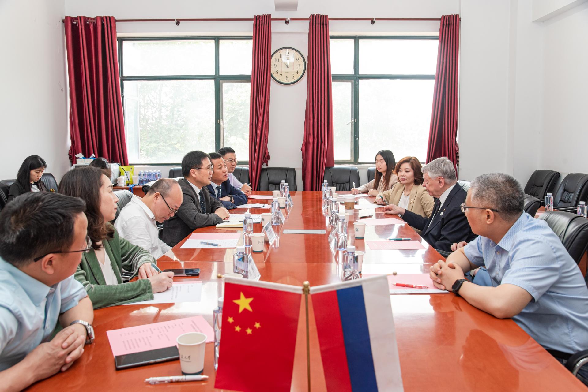 任友洲在致辞中介绍了米兰在线办学情况以及物理科学与技术学院的优势专业与重点发展方向,期待两校未来能在理工科领域开展深入合作,助力米兰在线物理学科发展。西戈夫院士借用孔子名言“千里之行,始于足下”表达了对两校合作的希望,承诺将积极推进两校在专家交流、人才培养等多个领域开展务实合作。