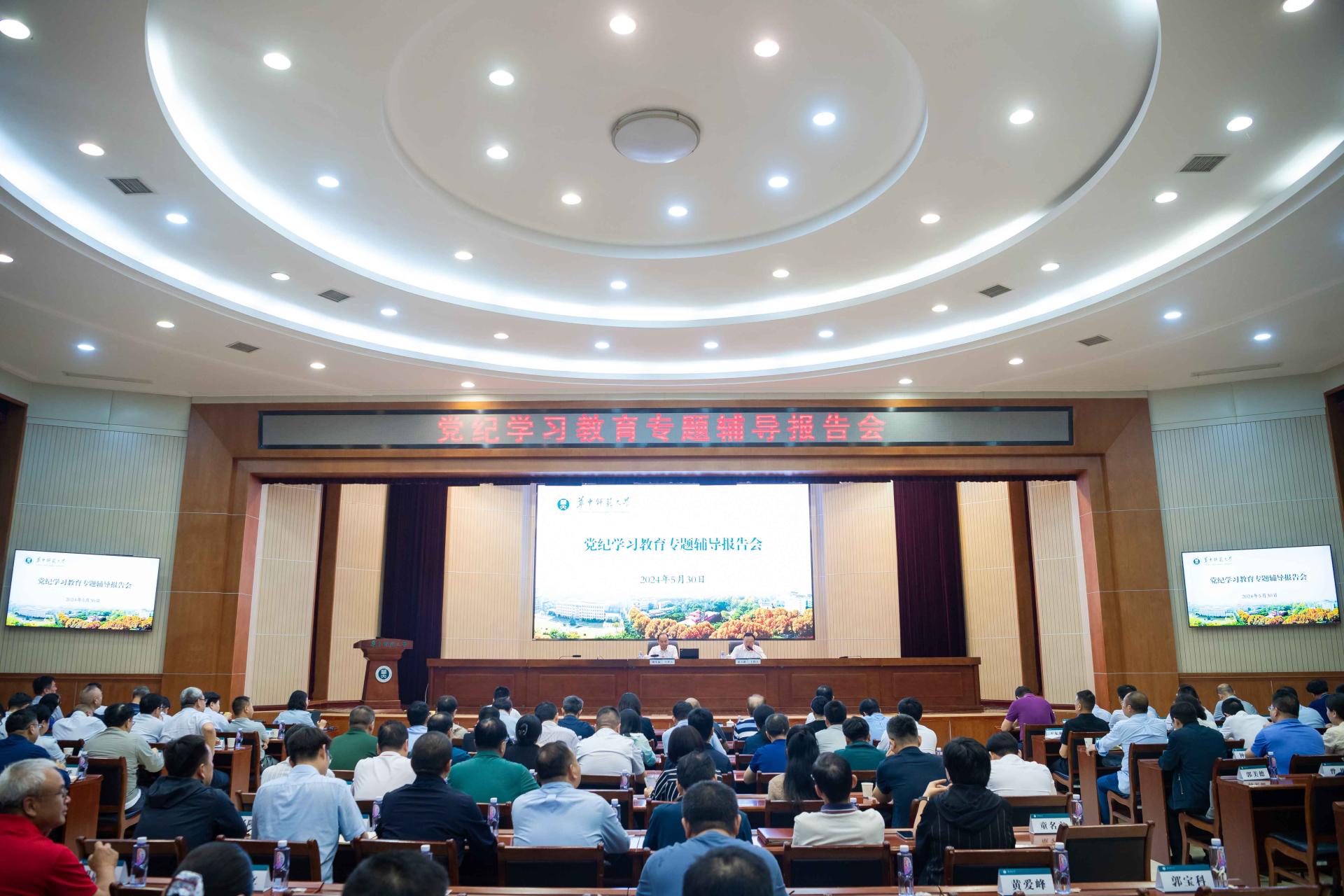 华大在线讯(通讯员 王涛)为深入学习贯彻《中国共产党纪律处分条例》(以下简称《条例》),进一步加强全校党员干部的党性教育和纪律建设,推动党纪学习教育走深走实,5月30日,学校党委举行党纪学习教育专题辅导报告会,师生党员“同上一堂党纪课”。湖北省监察委员会委员刘久远应邀作专题辅导报告。校党委书记夏立新主持报告会。