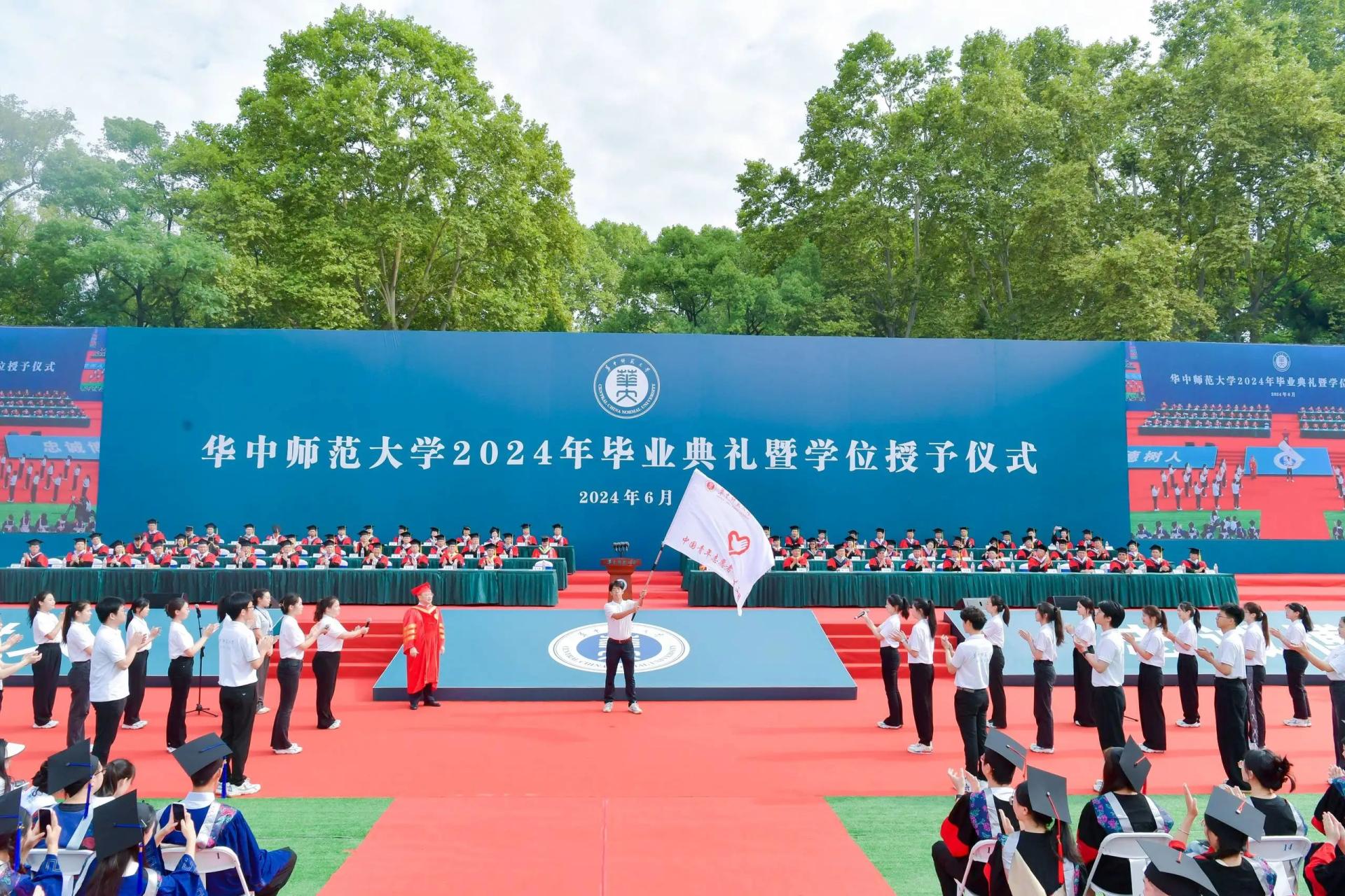 熟悉的校歌回荡在佑铭操场。来自各学院的80余位导师分列佑铭体育场两侧,为所有毕业生一一拨穗,并颁发学位证书。