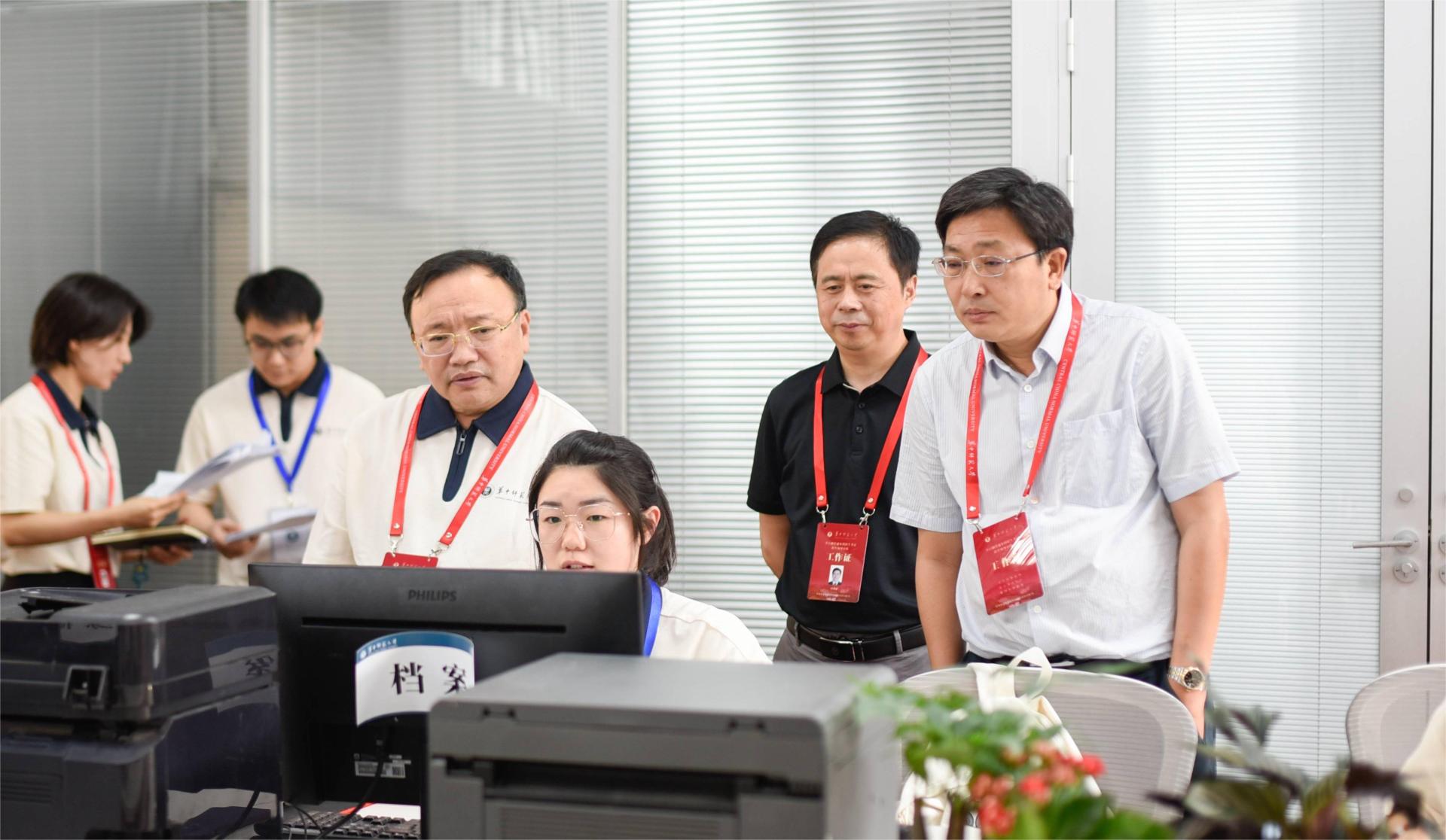 在本科招生录取现场,“阳光招生,科学选才”的标语突出醒目,教育部高校招生“十严禁”“30个不得”“八项基本要求”等规定悬挂于墙,清晰显眼。20余名工作人员分别坚守在招生咨询、系统录检、资格审查、数据处理等岗位,分工明确,流程紧凑,各项工作井然有序。夏立新一行与现场工作人员亲切交流,详细了解招生录取的工作流程,并就相关注意事项进行了交流。通过招生录取可视化数据大屏,本科生院相关负责人向校领导汇报了米兰在线招生录取进度和生源质量等情况,重点介绍了首次招生的本研衔接公费师范生的招生录取等相关情况。