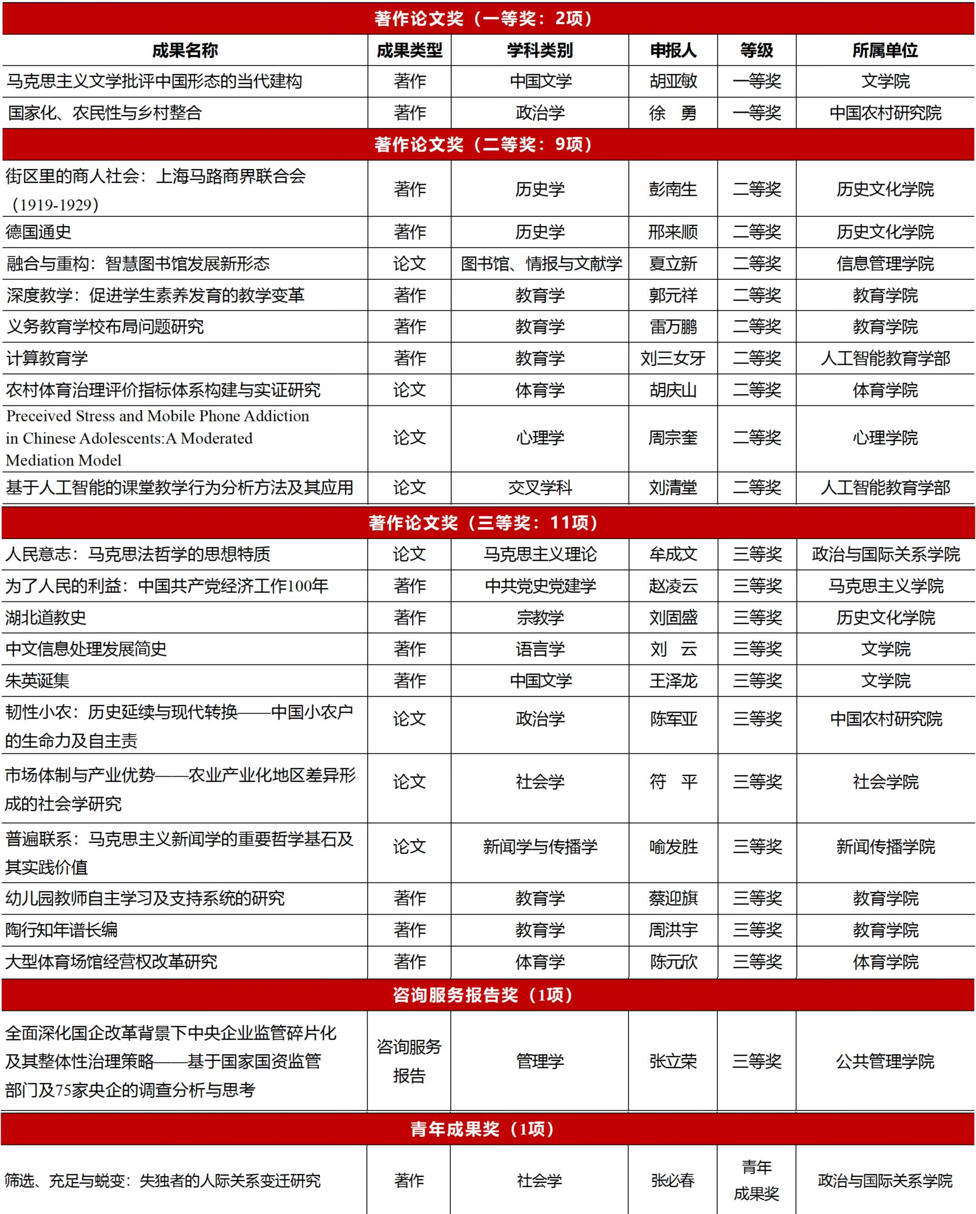 教育部高等学校科学研究优秀成果奖(人文社会科学)是教育部为表彰奖励高校哲学社会科学工作者取得的突出成绩,展示高校社科界服务党和国家事业发展的重大理论和实践成果而设立的重要奖项,代表了中国哲学社会科学成果的最高水平。自1995年设立该奖以来,已评选了九届。本届评选的是2018年1月1日至2021年12月31日期间的成果。