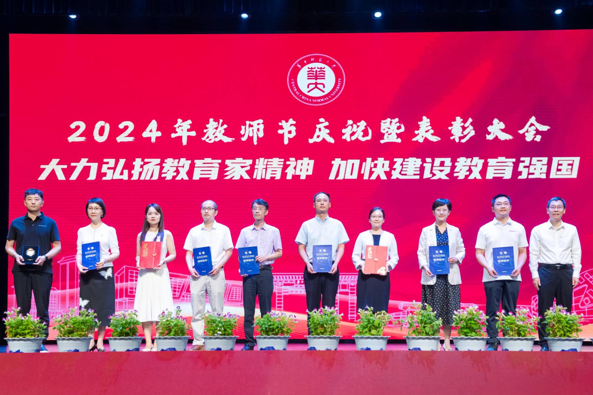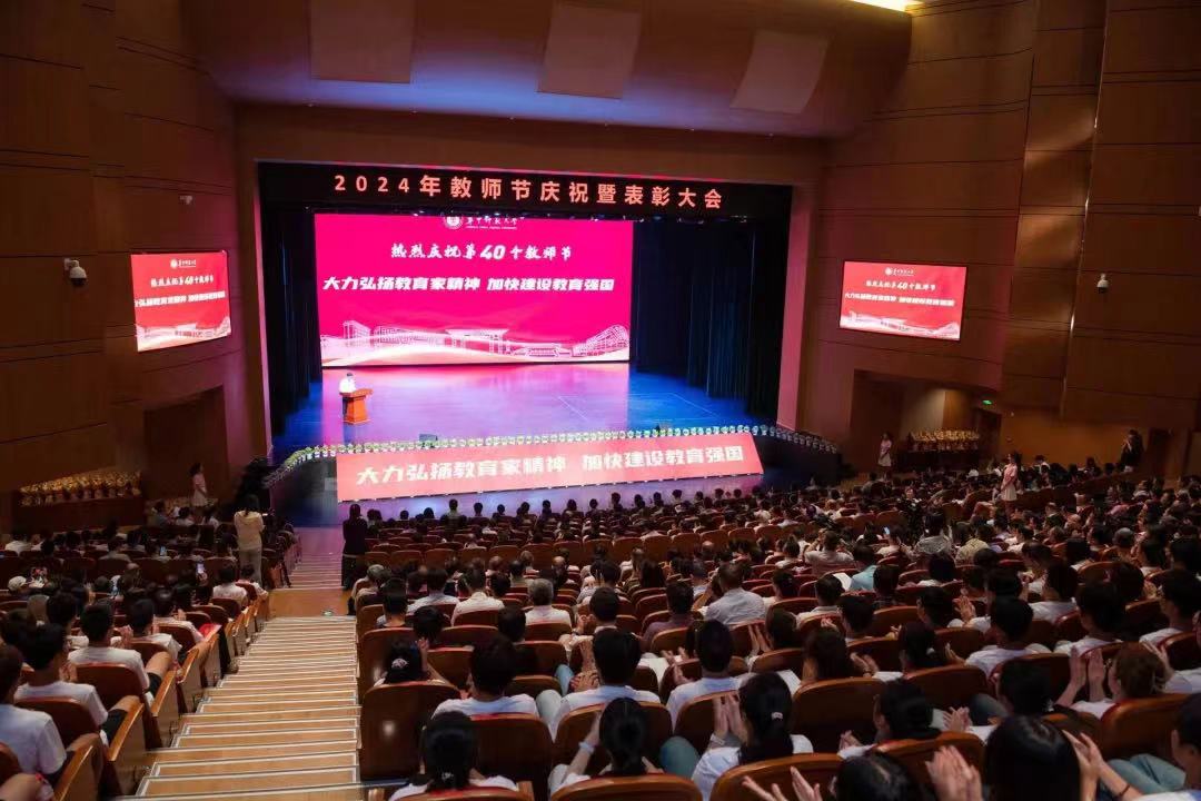 华大在线讯(记者 华轩)为庆祝第40个教师节,9月10日,学校2024年教师节庆祝暨表彰大会在大学生活动中心礼堂举行。全体在校校领导,重要人才计划、重要荣誉(奖项)获得者,引进人才代表,荣休教师、从教30年、40年教师、新入职教师,校内各单位主要负责人,教职工党支部书记以及学生代表等出席大会。大会由副校长任友洲主持。