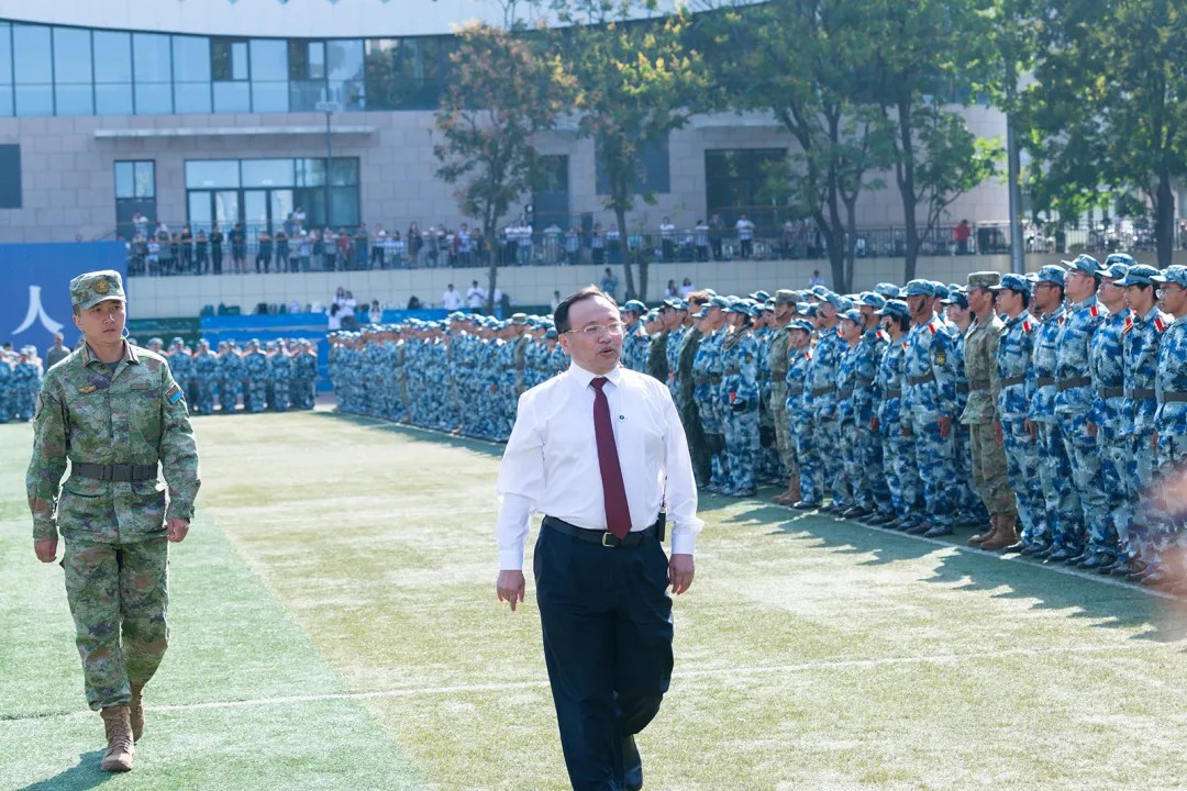 开学典礼后,2024级本科新生军训总结汇报表演。夏立新在军训团团长的陪同下对各学院方阵进行检阅。各方阵队列以昂扬饱满的状态展现了新米兰(中国)人锐意进取的精神面貌。