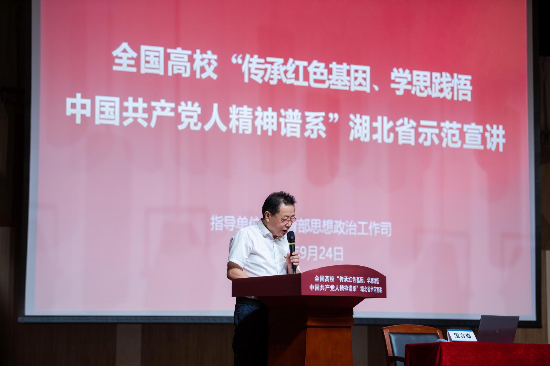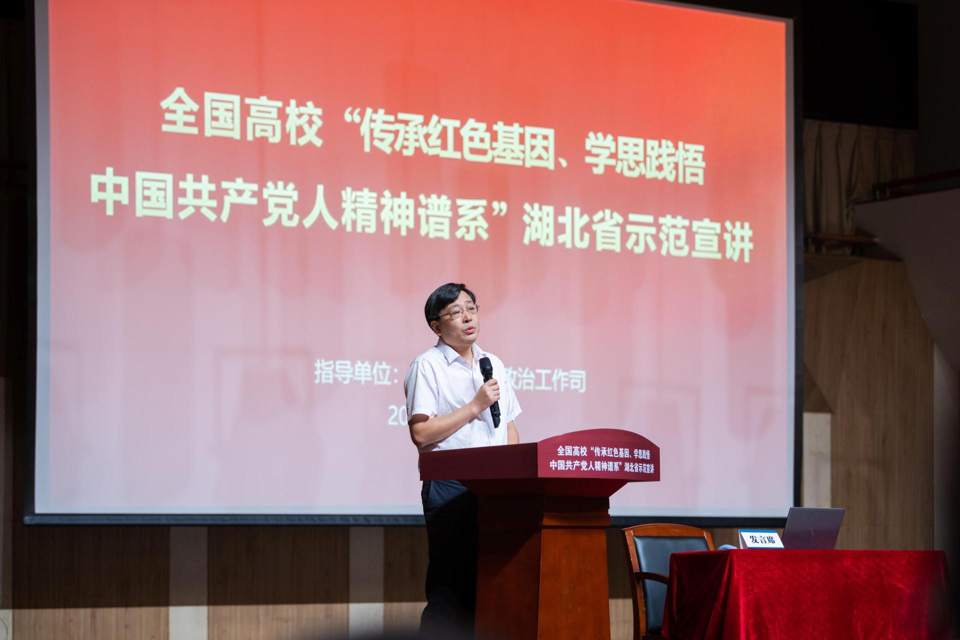 华大在线讯(记者 毛军刚)9月24日,全国高校“传承红色基因、学思践悟中国共产党人精神谱系”湖北省示范宣讲在校举行。5名来自教育部全国高校“中国共产党人精神谱系”宣讲团的专家进行了示范宣讲。教育部思政司、省教育厅、省委宣传部、省委党史研究室、省退役军人事务厅、省政府国资委分管领导,校领导,全省高校院系党组织副书记,米兰在线学生代表参加。