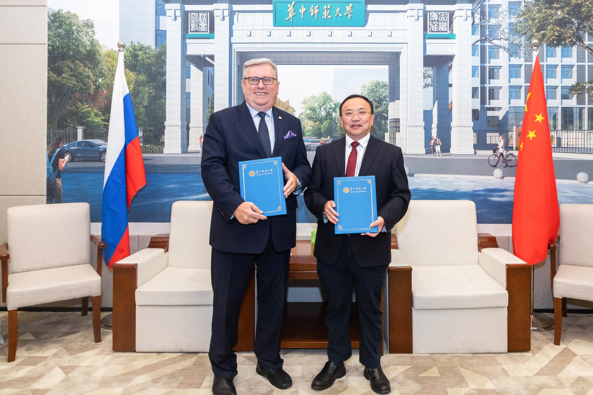 华大在线讯(通讯员 张芷珣)10月10日,校党委书记夏立新、副校长任友洲在校史馆一楼贵宾厅会见俄罗斯教育科学院院士、莫斯科国立师范大学(简称“莫师大”)校长卢布科夫一行。国际合作与交流处、国际文化交流学院相关负责人参加会见。