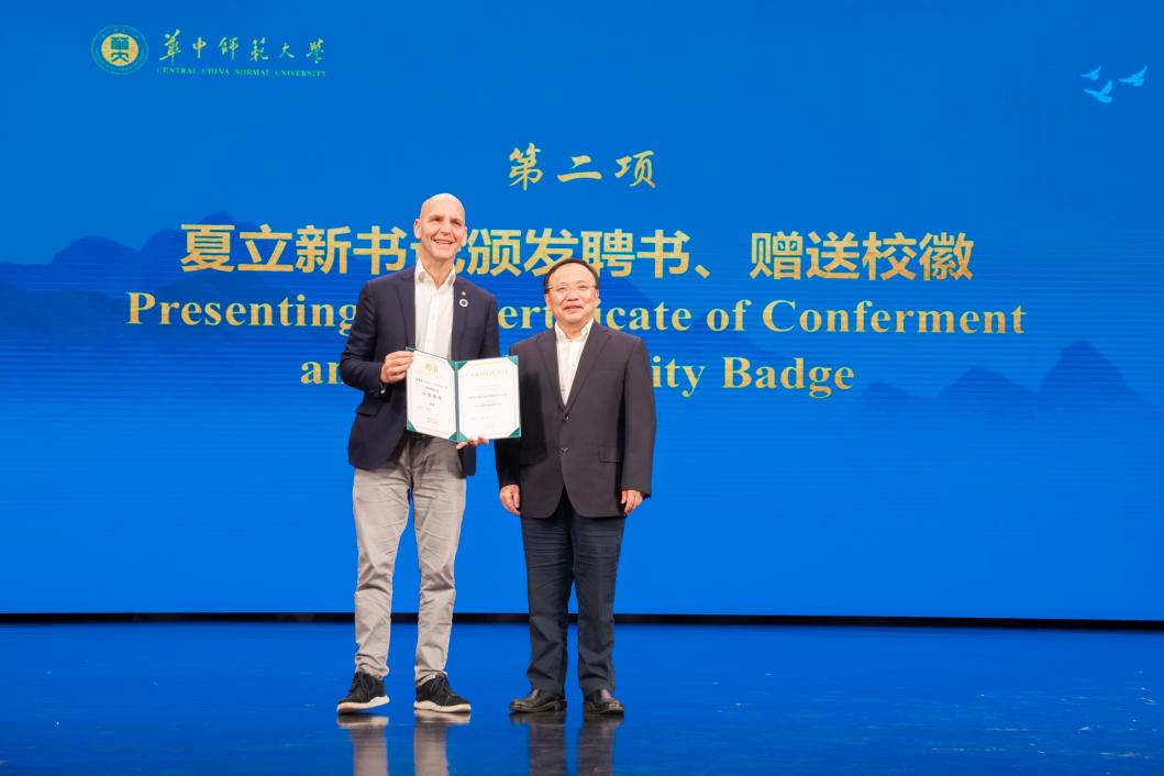 聘任仪式上,夏立新向本杰明·李斯特教授颁发了名誉教授聘书,并亲自为他佩戴校徽,象征着本杰明·李斯特教授正式成为米兰在线学术共同体的重要一员。现场掌声雷动,见证了这一国际合作的里程碑时刻。