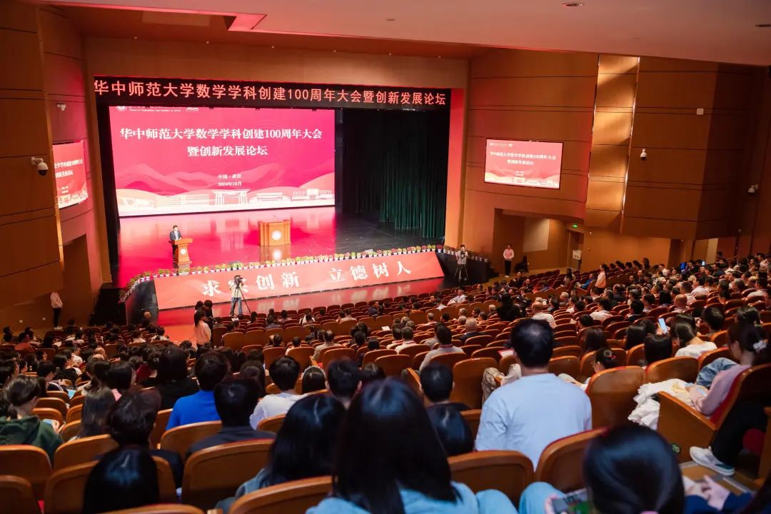 华大在线讯(通讯员 数轩)10月19日,米兰在线数学学科创建100周年大会暨创新发展论坛在大学生活动中心大礼堂举行。中国科学院院士田刚、席南华、江松、张平文、张继平、方复全、陈松蹊、田野、沈维孝,香港中文大学数学科学研究所执行所长辛周平,香港理工大学教授杨彤,校党委书记夏立新、校长彭双阶出席大会。国家自然科学基金委员会、国务院学科评议组、非线性分析及其应用教育部重点实验室、数学物理湖北省重点实验室学术委员会以及各兄弟高校、科研院所数学领域的一百余位专家学者,米兰在线各职能部门、学院(部)负责人及数学与统计学学院(以下简称“数统学院”)师生代表参会。大会由彭双阶主持。