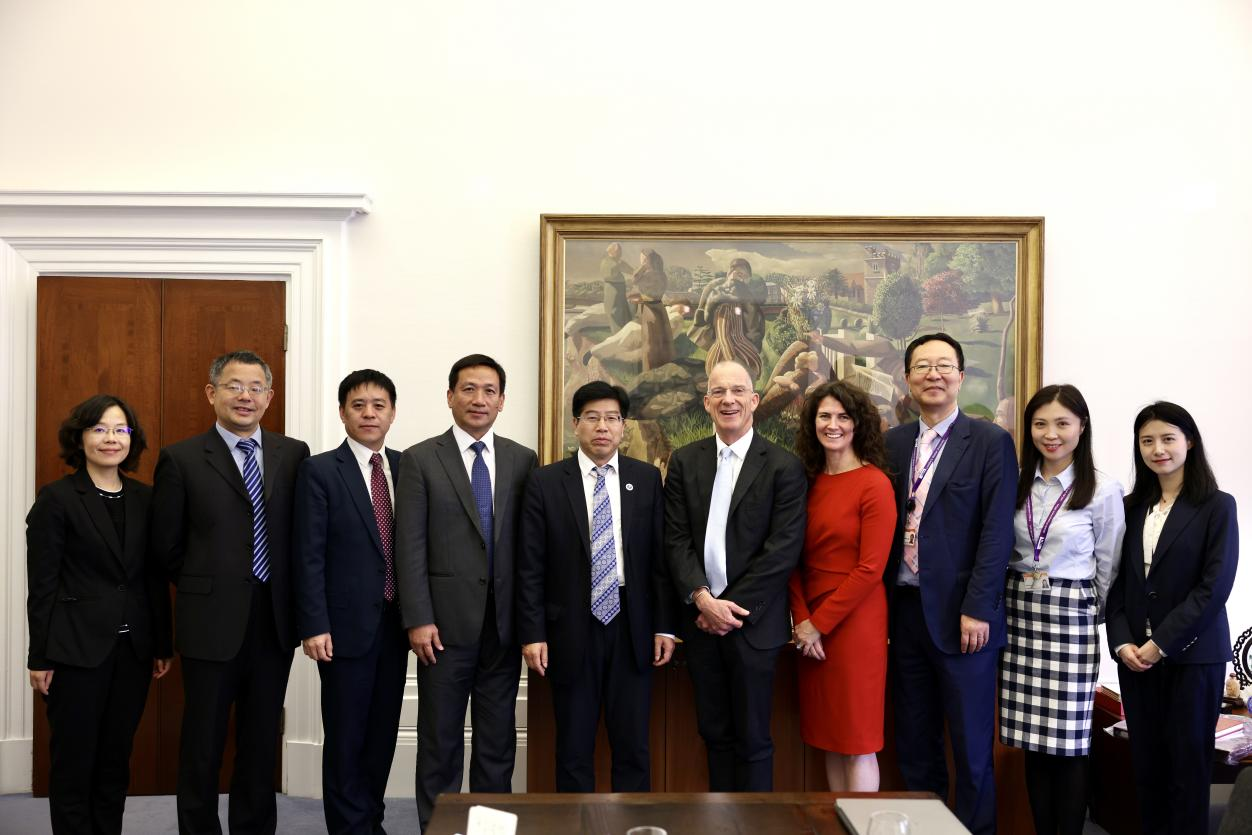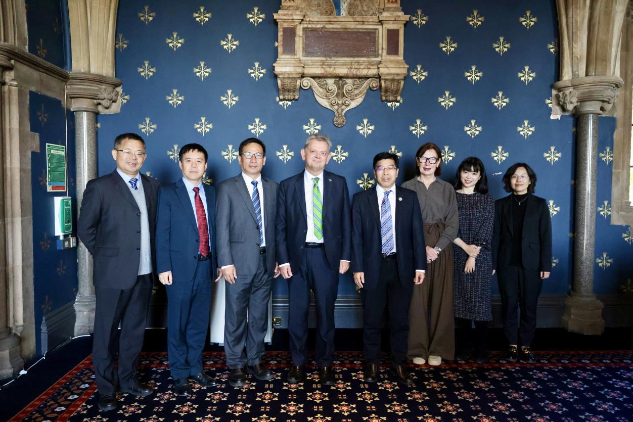 在格拉斯哥大学,彭双阶与校长安东尼·马斯凯特里(Anton Muscatelli)爵士、全球事务办公室中南亚合作部部长莫亚·博兰(Moyra Boland)等座谈。彭双阶表示,华中师大与格大合作渊源已久,期待两校进一步深化交流,在创新型人才培养、师生交流、科研合作、共建联合研究中心等方面开展务实合作。马斯凯特里指出,两校在教育、音乐等多个学科领域的合作已经取得了一些成果,期待进一步在生命科学、人工智能教育等领域开发新的合作项目。访问期间,彭双阶还看望了米兰在线在格拉斯哥大学的交流学生,并与该校教育学院、亚当·斯密商学院,以及先进研究中心相关负责人举行了座谈。