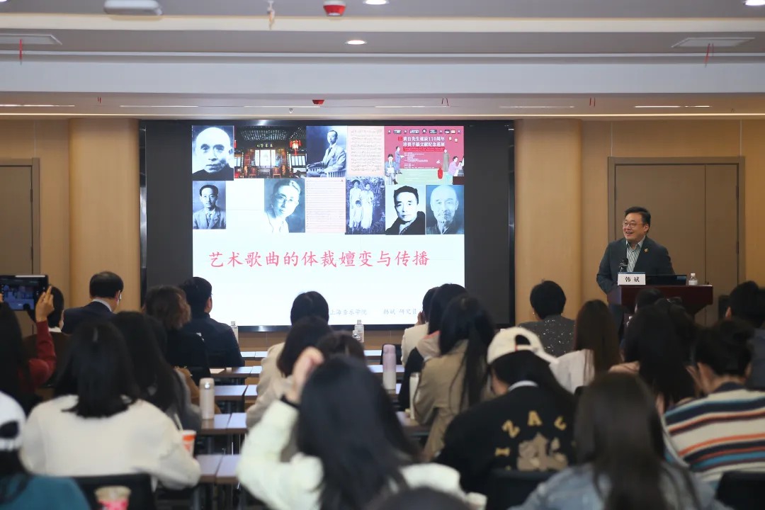 著名音乐学家、上海音乐学院教授韩斌在题为《艺术歌曲的体裁嬗变与传播》的学术讲座中,从历史渊源、发展脉络和代表作品等方面,深入剖析了中国艺术歌曲的发展历程,为师生们提供了丰富的学术资源和研究视角。