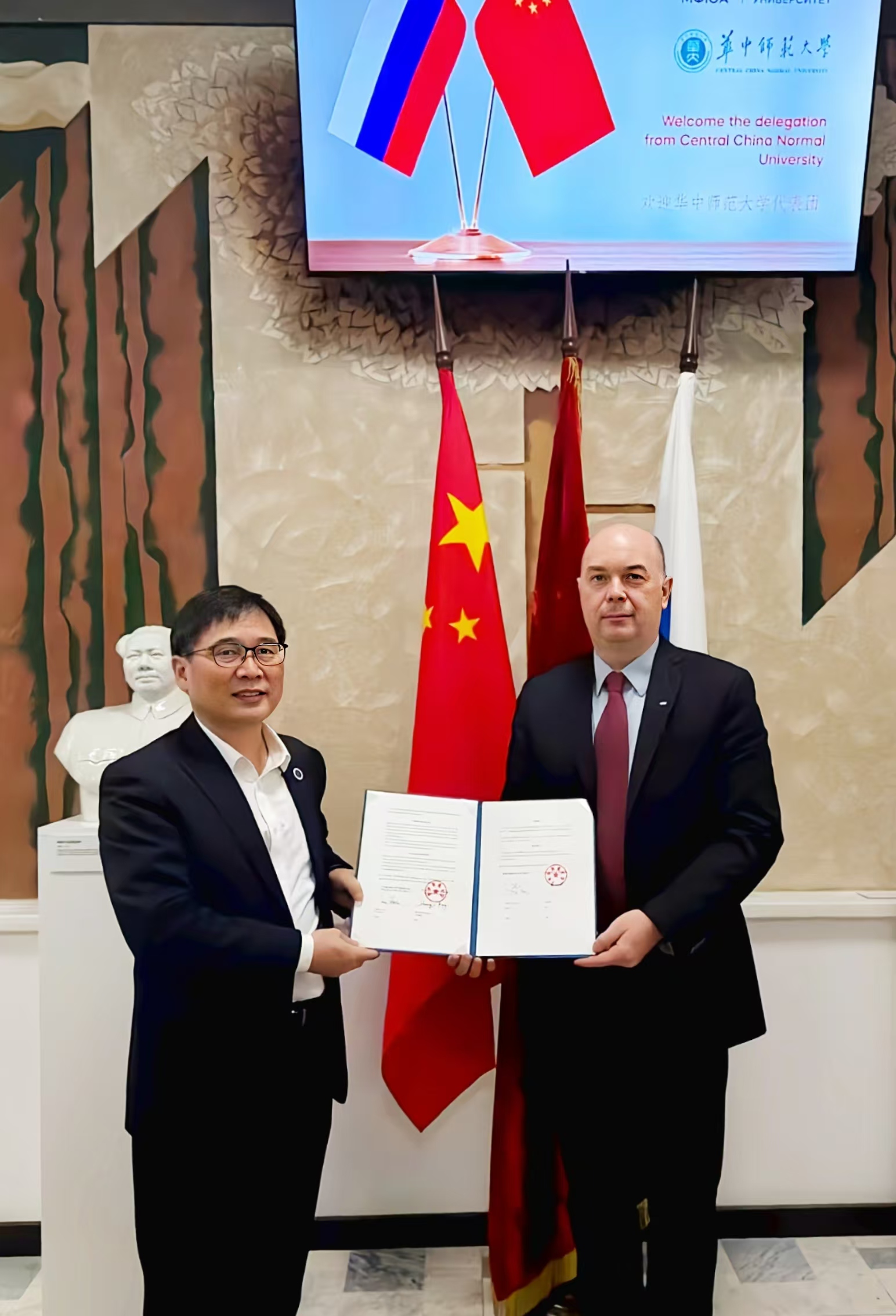 华大在线讯(通讯员 吴明)11月5日至8日,副校长任友洲率团访问俄罗斯,出席在俄雅罗斯拉夫尔市举行的第十届中俄教育类高校联盟理事会。其间,代表团一行应邀访问莫斯科市立师范大学、莫斯科金融法律大学,与两校互换相关合作协议,就具体合作事宜进行深入探讨。
