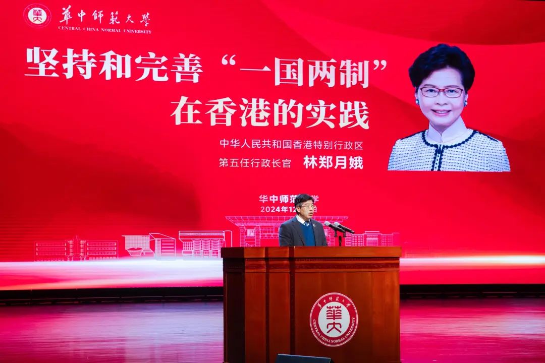 林郑月娥女士作题为《坚持和完善“一国两制”在香港的实践》的主题演讲,并与现场师生交流