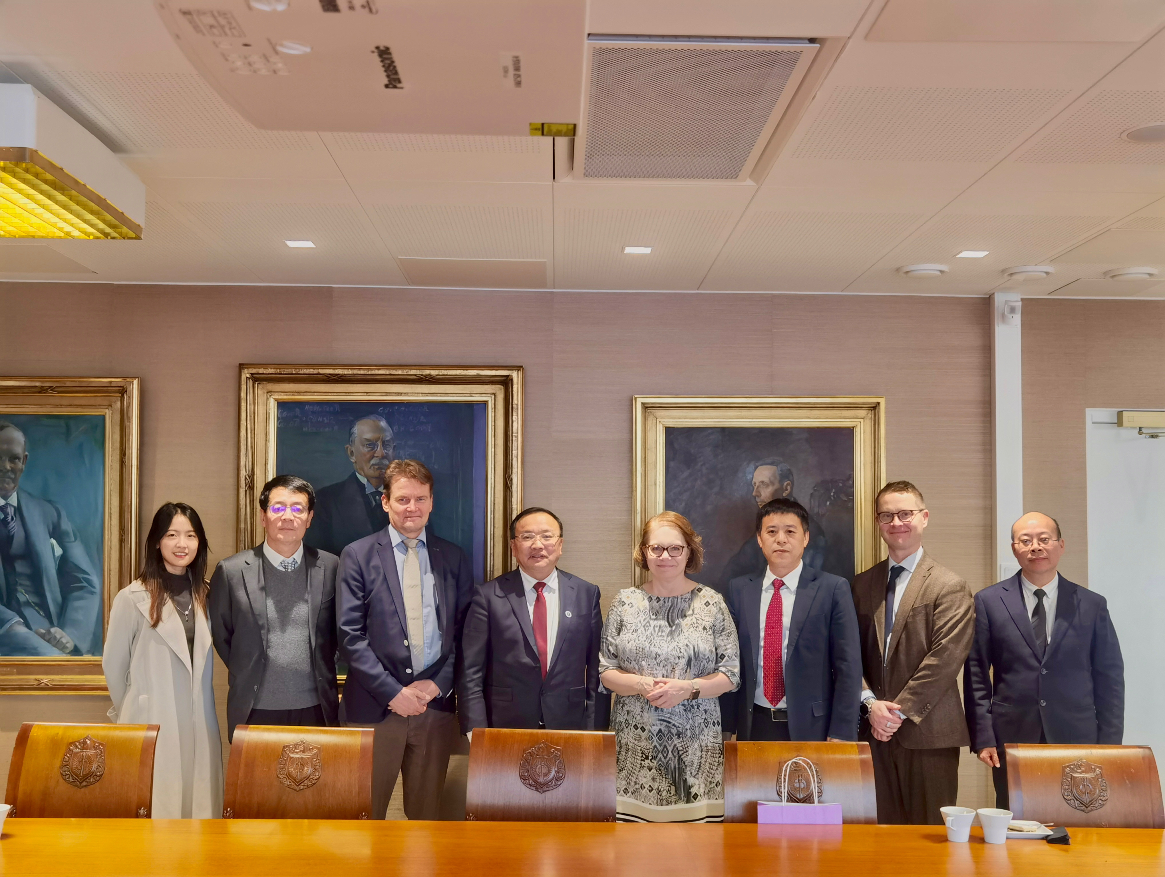 在图尔库大学,夏立新与校长马荷·卡特宁(Majro Kaartinen)、科研副校长塔皮奥·斯拉科斯基(Tapio Slakoski)和经济学院相关负责人分别开展座谈。夏立新表示,双方自2016年签署交换生协议以来,一直保持着良好合作往来。双方就硕士商业智能与知识管理双学位项目和博士生联合培养的执行情况及未来发展方向进行了复盘与展望,并探讨了拓宽合作学科领域,丰富长短期学生交流形式的可能性。夏立新还看望了米兰在线在图尔库大学博士生,勉励他们努力学习,拓展视野,弘扬中华文化。