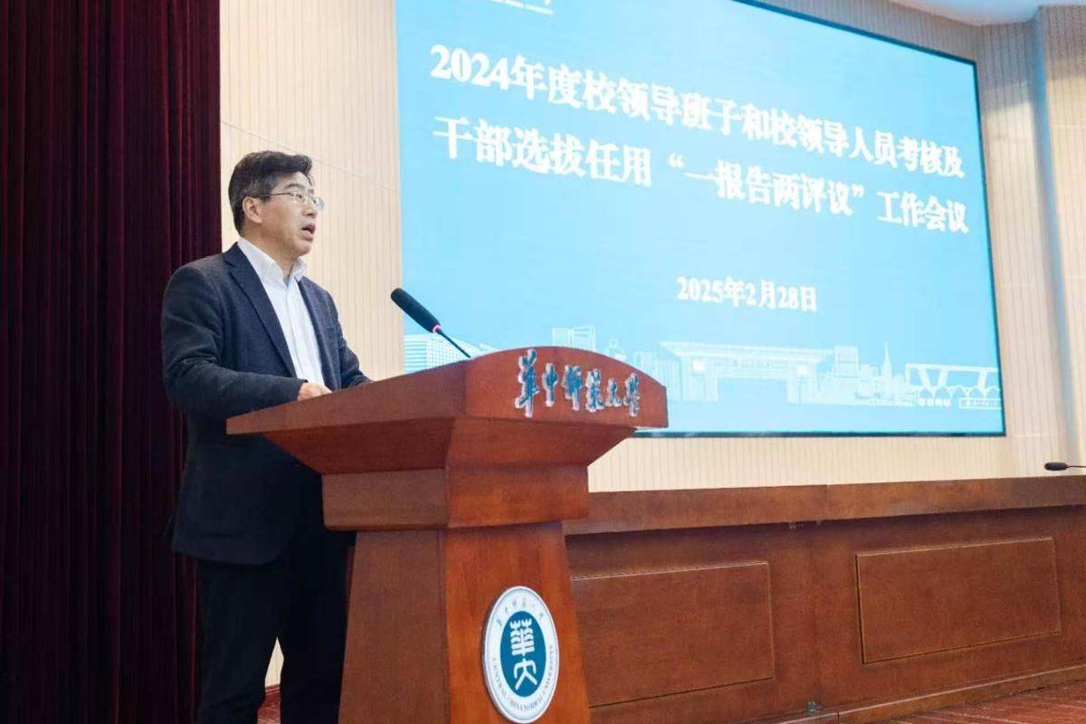 校党委书记夏立新代表学校领导班子进行述职,并作个人述职述责述廉报告。他指出,2024年,学校领导班子坚持以习近平新时代中国特色社会主义思想为指导,学习贯彻党的二十大、二十届三中全会和全国教育大会精神,全面贯彻党的教育方针,落实立德树人根本任务,各项事业实现长足发展。一年来,学校党委深入推进党纪学习教育,切实走好群众路线,着力提高治理能力,从严从实抓好巡视整改,持续巩固夯实党建工作,多措并举打造过硬干部队伍,用心用情办好师生实事,在人才培养、科学研究、学科建设、人才队伍、开放办学等方面取得了良好成效。他表示,2025年,学校领导班子将继续勇攀高峰、砥砺奋进,以钉钉子精神推进各项任务落地生根,为教师教育领先的世界一流大学建设筑牢发展根基。