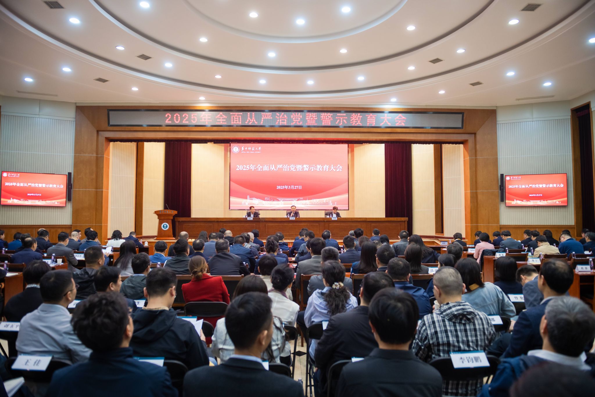 华大在线讯(通讯员 涂敏)3月27日,学校召开2025年全面从严治党暨警示教育大会,总结学校2024年全面从严治党工作,分析研判形势任务,部署安排2025年重点工作,深入开展警示教育。校党委书记夏立新出席会议并讲话,校长、党委副书记彭双阶主持会议,校党委副书记、纪委书记刘继文总结并部署学校纪检巡察工作。