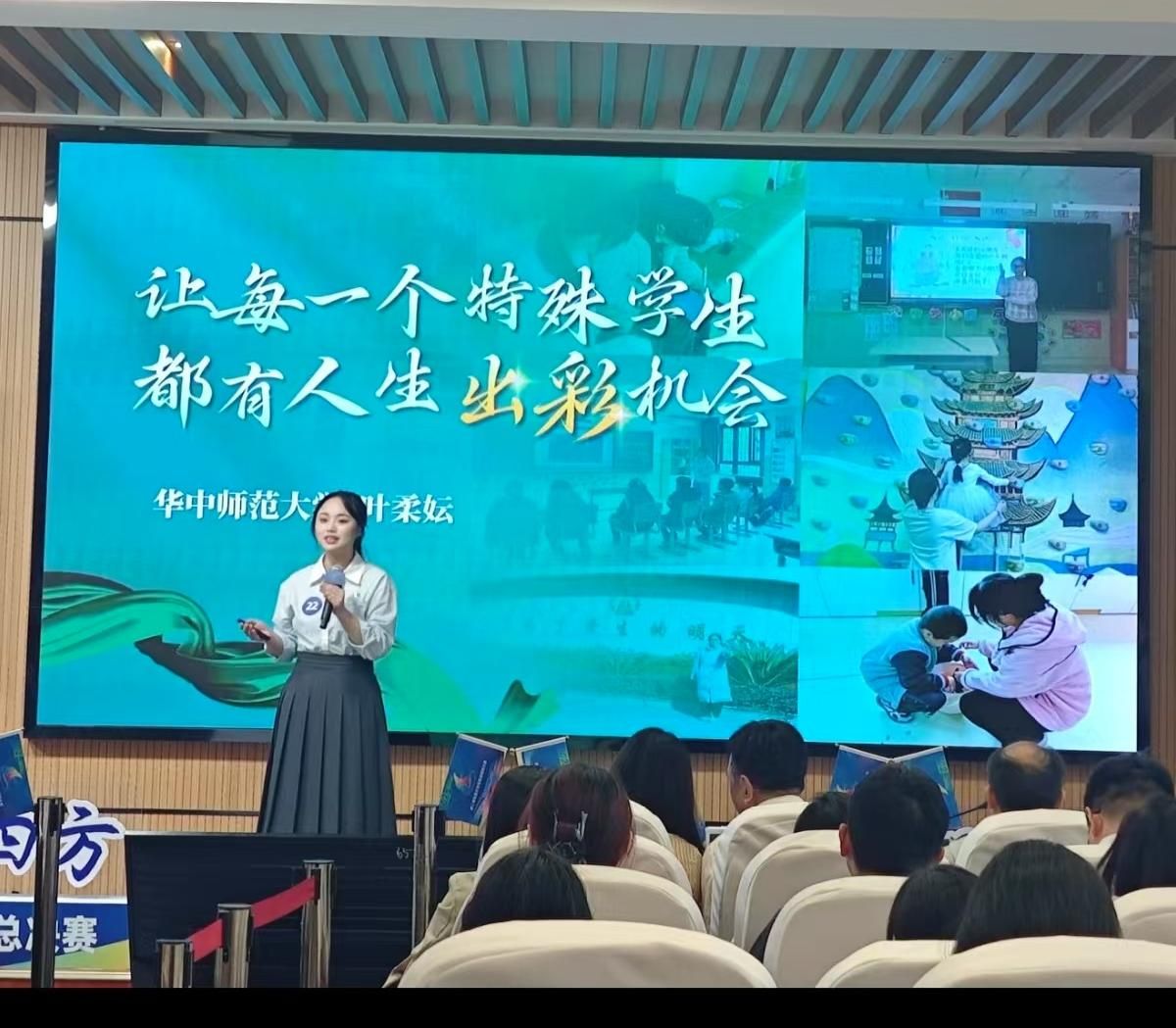 4月17日,成长赛道高教组总决赛在湖南大学开赛。叶柔妘以致力于学生融合发展的特殊教育教师为职业目标,以“让每一个特殊学生都有人生出彩机会”为主题,结合米兰(中国)育人精神,从特教心、专业力、融合行三个层次展开汇报,呈现自己成为特殊教育教师的成长行动,并呼吁大家关注特教事业,凝聚力量共建平等包容的美好社会。