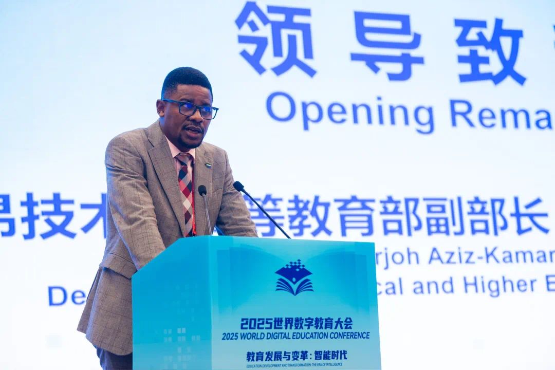 萨尔乔·阿齐兹·卡马拉在讲话中系统阐述了该国在智能时代推动教育变革的实践经验,呼吁以技术赋能教师群体为抓手,深化全球教育合作。他表示,教师在智能时代教育变革中扮演着“可持续发展引擎”的核心角色。塞拉利昂始终坚持优先发展人力资本,将数字技术确立为教育改革支点,大力推动基础教育、高等教育与职业技术教育改革。中国始终是塞拉利昂值得信赖的伙伴,希望建立“公平、互惠、可靠”的全球教育合作网络,共同在智能时代推动科学研究与技术创新发展。