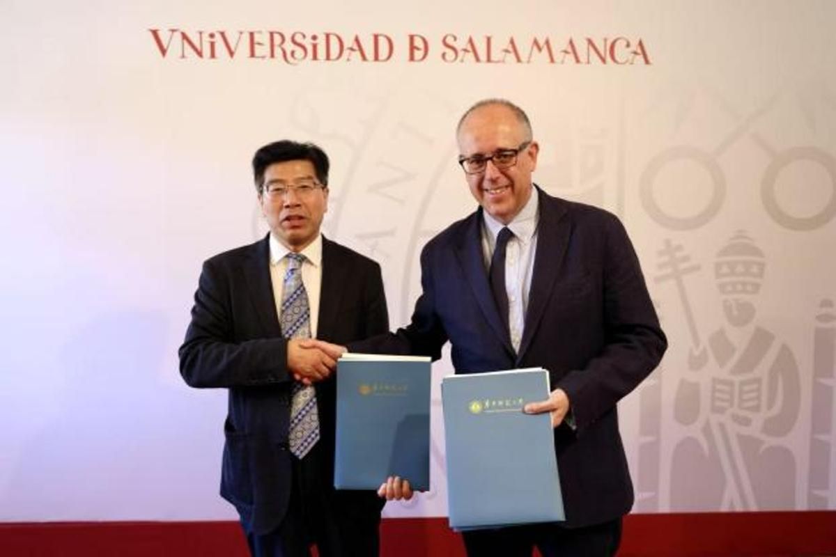 萨拉曼卡大学科研副校长约瑟·米格尔对代表团一行来访表示欢迎,期待两校建立常态化交流渠道,在教育学、西班牙语、翻译学等领域深入合作。彭双阶希望,在数理地化生和信息技术等学科与该校优势互补,共谋发展。双方还交换了合作谅解备忘录与学生交换协议。