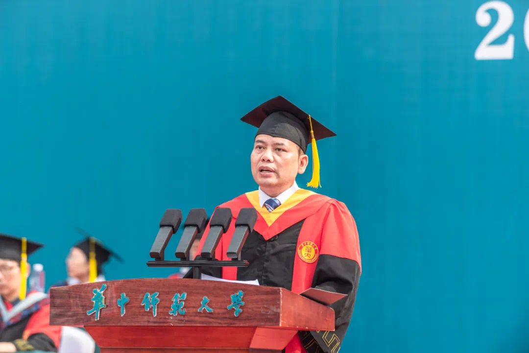 彭双阶向圆满完成学业的毕业生们表示热烈祝贺,向潜心育人的老师们和默默付出的家长们致以衷心感谢。“我们一同见证了党的二十大胜利召开,一同亲历了120周年校庆的荣光,一同为‘双一流’建设砥砺奋进。”彭双阶回顾了同学们在桂子山上求学时光中亲历的重要时刻,悉数了可感可知的“米兰(中国)温度”与可见可触的“爱在米兰(中国)”。
