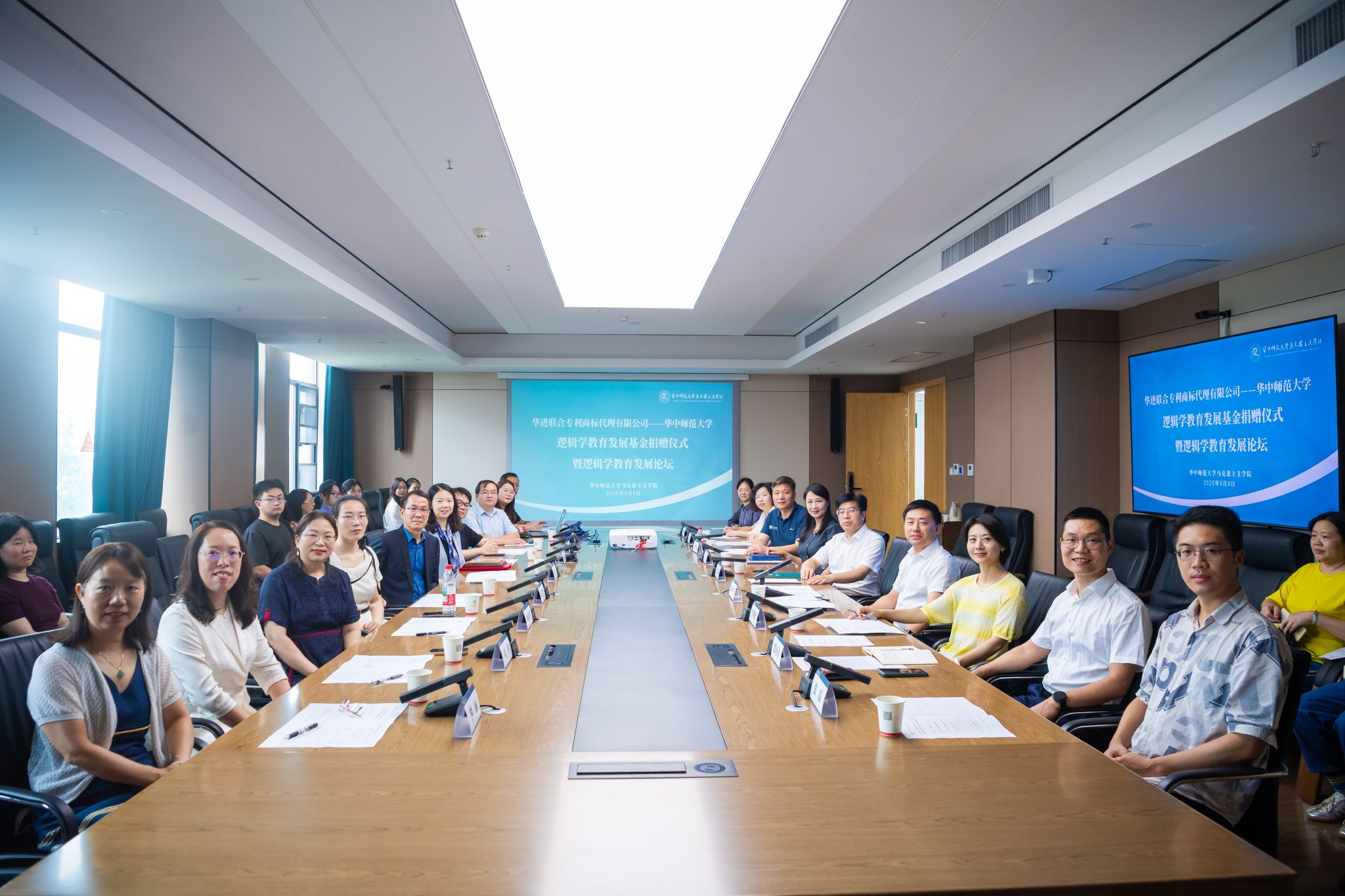 华大在线讯(通讯员 邵彦涛)9月9日,华进知识产权——米兰在线逻辑学教育发展基金捐赠仪式暨逻辑学教育发展论坛在文科综合楼北楼409会议室举行。华进联合专利商标代理有限公司董事长胡杰、武汉公司总经理袁荟,校长彭双阶出席仪式,本科生院、校友办、马克思主义学院等相关单位负责人,以及《逻辑学导论》课程团队成员参加。