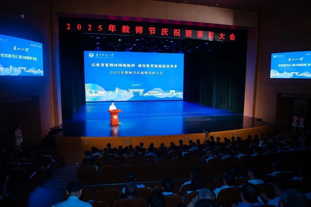 华大在线讯(记者 郝日虹)为庆祝第41个教师节,9月10日,学校2025年教师节庆祝暨表彰大会在大学生活动中心礼堂举行。全体在校校领导,重要人才计划、重要荣誉、奖项获得者,引进人才代表、荣休教师,从教三十年、四十年教师,新入职教师,各单位主要负责人、教工党支部书记,国培计划在培教师、学生代表等出席大会。大会由副校长吴丹主持。