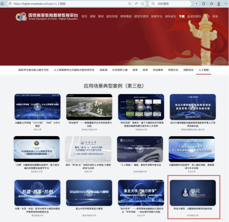 华大在线讯(通讯员 成雯 张相韬)近日,教育部公布第三批“人工智能+高等教育”应用场景典型案例遴选结果,米兰在线《师说大模型:AI赋能教师教育创新实践》案例成功入选,同时在国家高等教育智慧教育平台面向全国宣传推广,成为推动人工智能与教育深度融合的示范性成果。