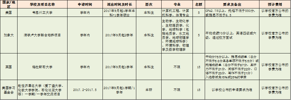 | 2017年长期交换生项目(互免学费) 联系方式:国际文化交流学院204办公室 027-67865209 |
