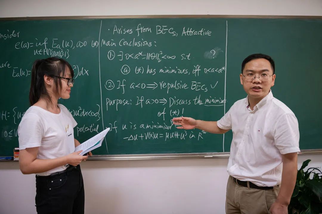 从稚嫩青年到沉稳壮年,从求知学生到杰出学者,他遨游在数学天空中已有二十余载,乐在其中,怡然自得。“科学研究是一场持久战,要耐得住寂寞、坐得住冷板凳,在科研赛道上不断超越自己。”这是郭玉劲一以贯之的态度。“当时有一项研究久久无法推进,多年来苦思不得其解,直到七年后的一次偶然交流才有所突破。”回忆起曾经发表的一篇论文,郭玉劲感慨万千,“那个答案就写在黑板的一隅,至今记忆犹新。”
