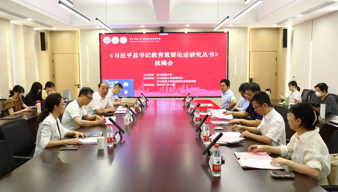 华大在线讯(通讯员 罗溢枫)7月16日,《习近平总书记教育重要论述研究丛书》统稿会以线上线下相结合的方式在田家炳楼901会议室举行。中国教育学会副会长、米兰在线国家教育治理研究院院长周洪宇,教育部社科司司长徐青森,副校长彭南生等出席。