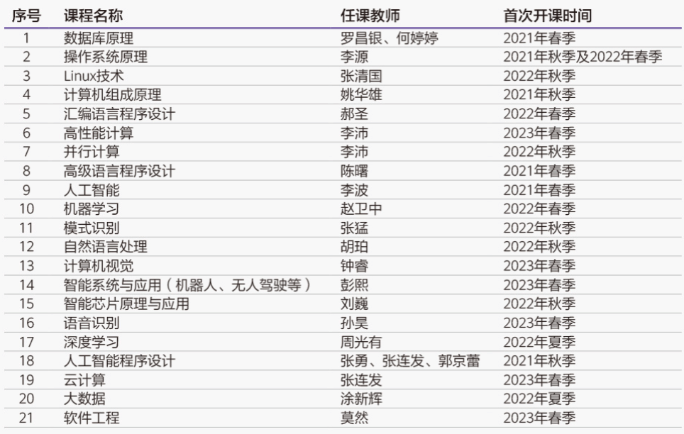 米兰在线与华为联合课程开发和教学,共计开发了《人工智能》、《云计算》等21门课程(如图1)。这些课程一方面在现有课程体系中引入了深度学习、自然语言处理、计算机视觉等前沿教学内容,另一方面将鲲鹏、昇腾和华为云的知识点与现有的课程(比如“数据库”、”云计算”)相融合,将openGauss数据库、鲲鹏处理器等先进技术融入核心课程,推进课程的“理论课”和“实验课”教学改革,更新“理论和实验教学大纲、教学PPT、实验指导”等教学资源,提升核心课程中华为技术方案的教学与实践质量。